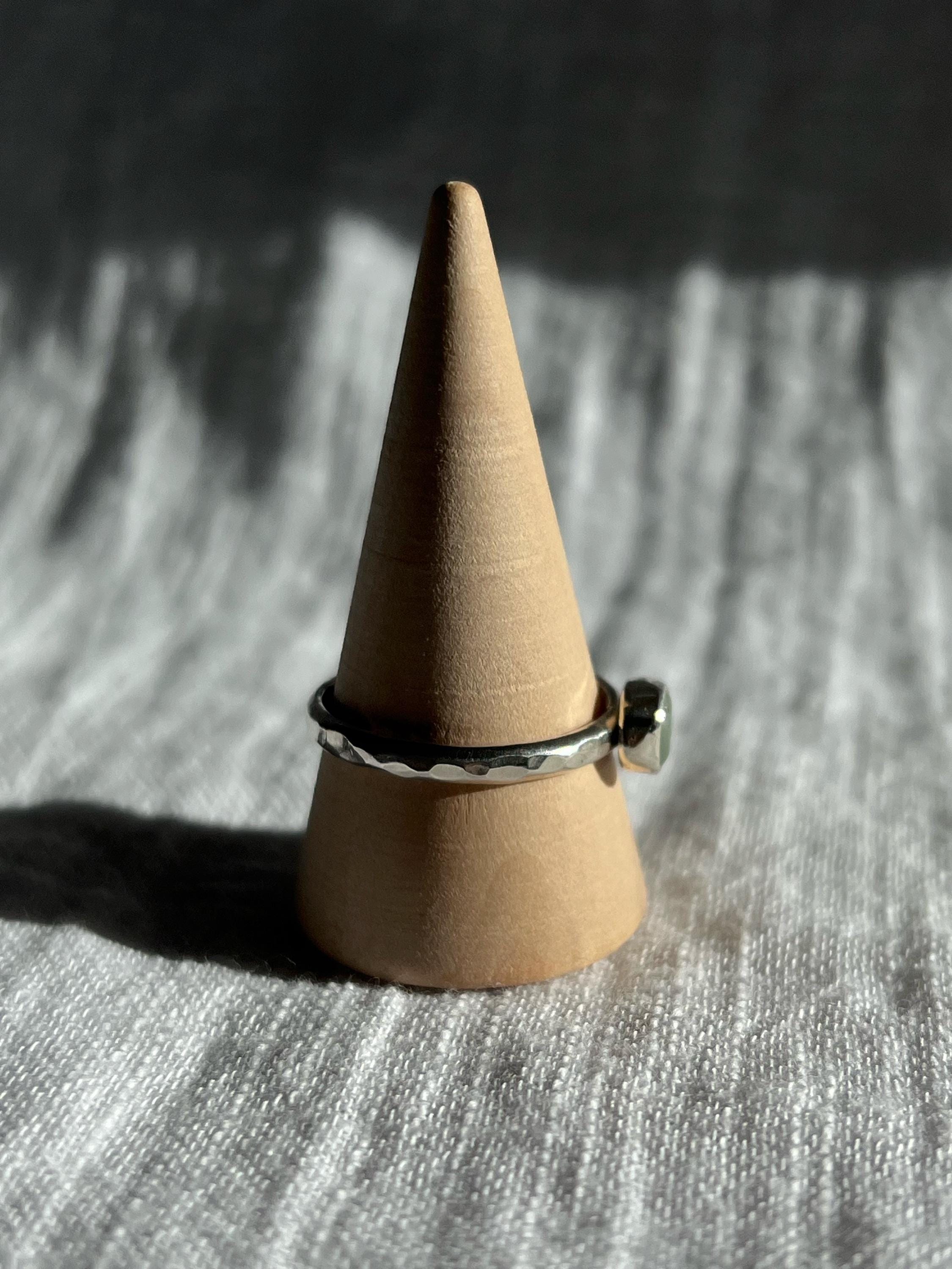 Handcrafted entirely by hand, this 925 sterling silver ring features a hammered, faceted band that reflects light with subtle, organic textures typical of artisanal work.