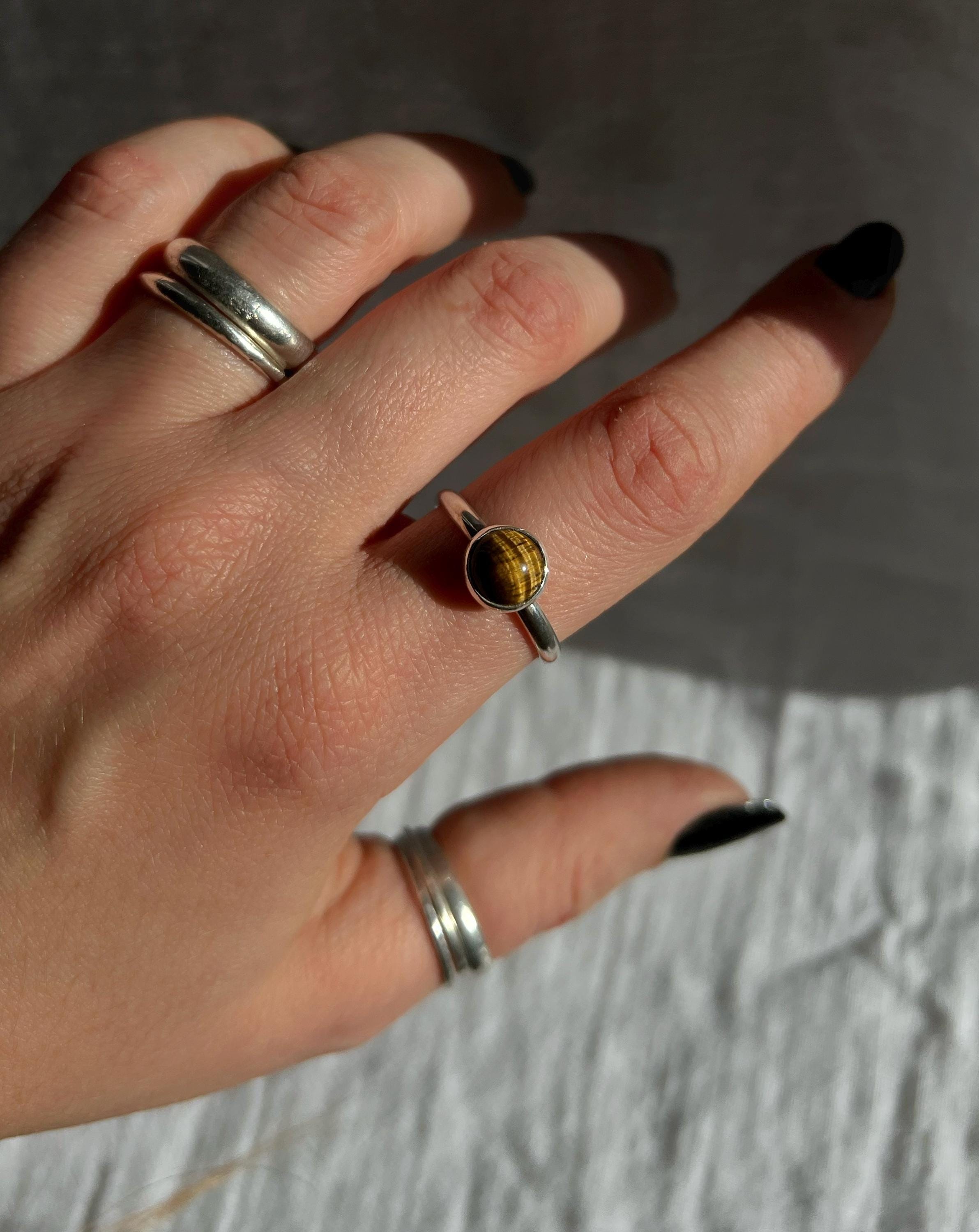 Handcrafted in 925 sterling silver, this ring pairs a clean, minimal design with the warm, magnetic beauty of tiger’s eye.